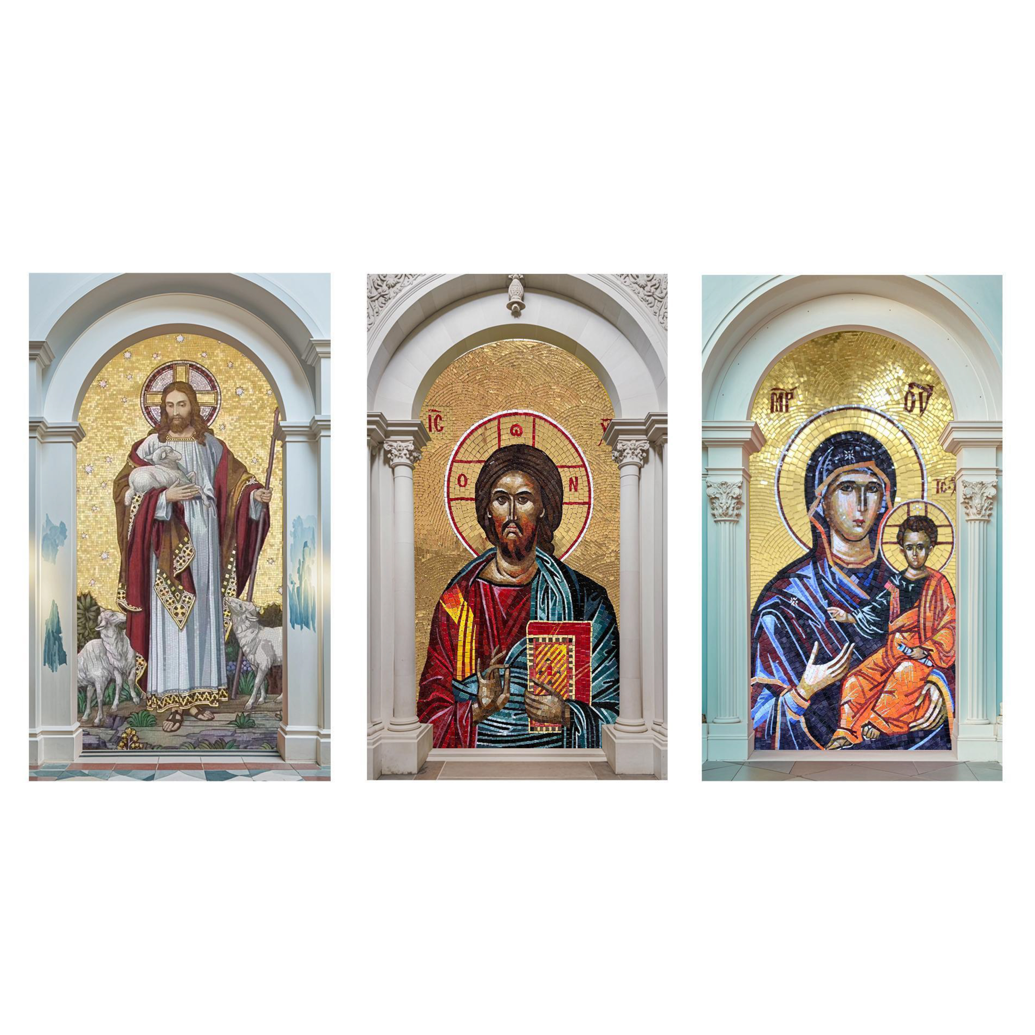 Mosaicos de figura santa de domo, creando un punto focal visual en espacios sagrados