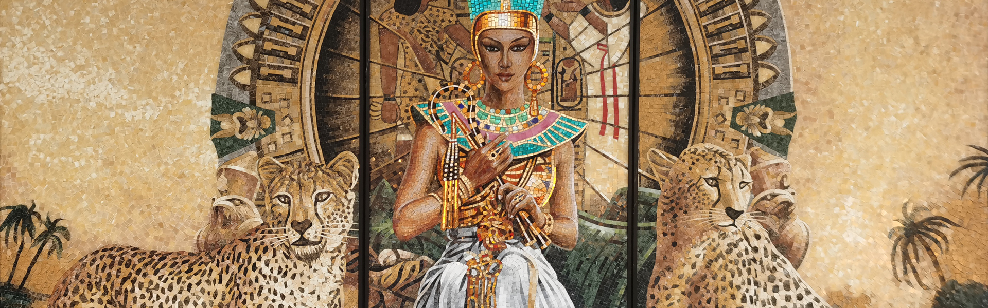 Mokdecortile crea obras de arte de mosaicos personalizados utilizando piedra natural, vidrio de jade de hielo y platino dorado hecho a mano para hacer una declaración.