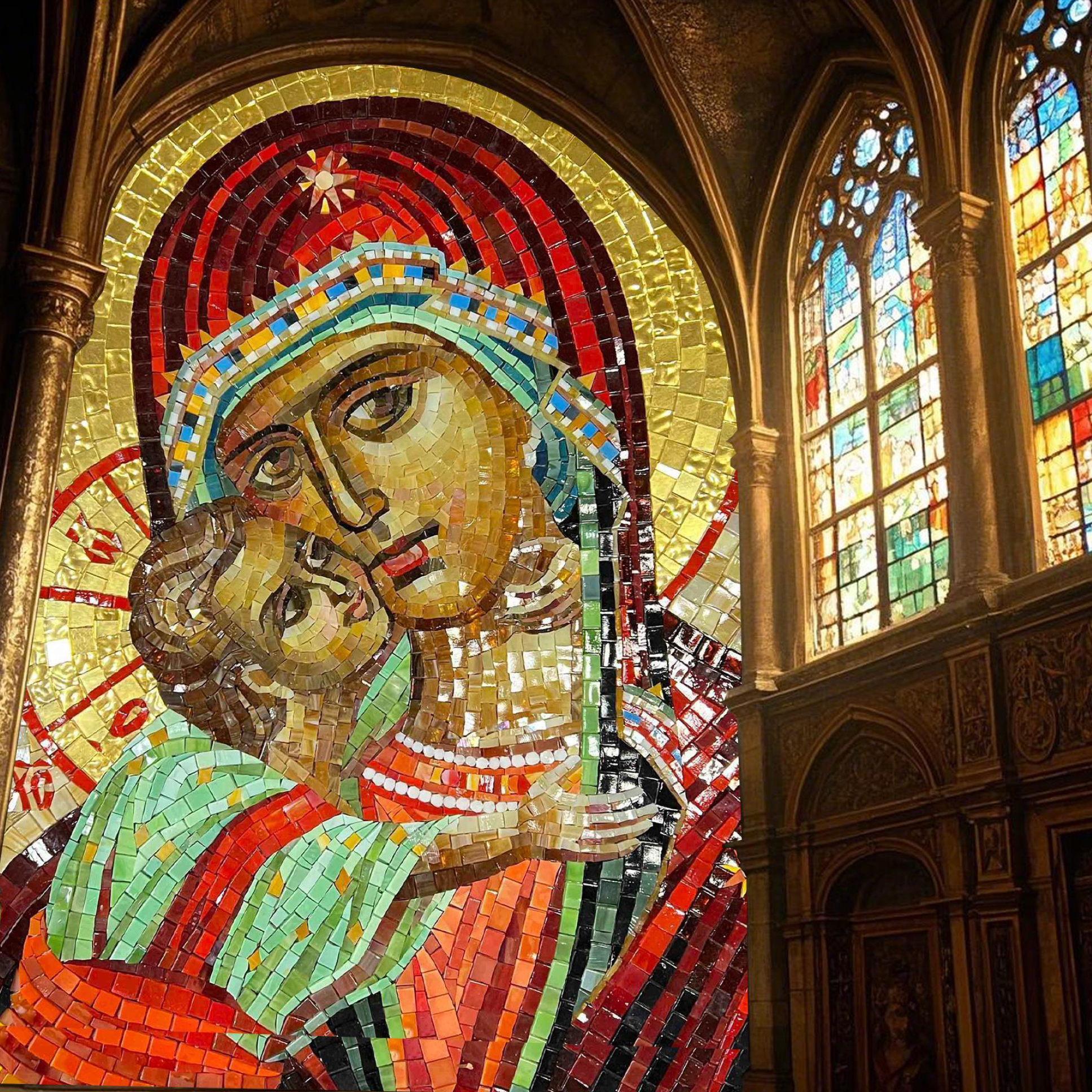 Mosaicos de figura santa de domo, creando un punto focal visual en espacios sagrados